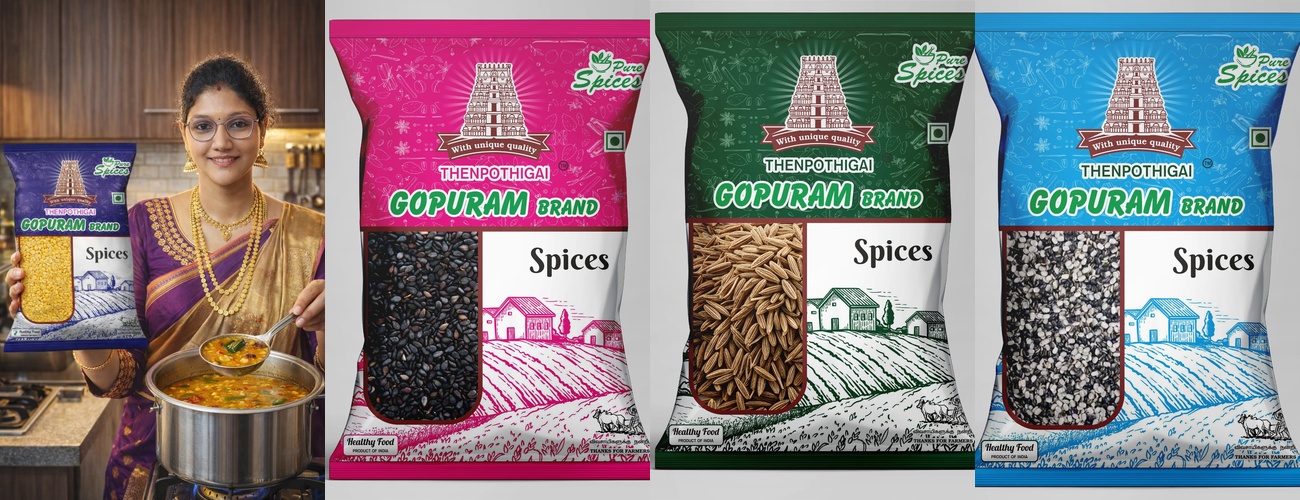 Thenpothigai Gopuram Brand is a trusted name in delivering premium quality spices, pulses, flours, and dry fruits to households across Tamil Nadu. Inspired by the rich heritage of South India and the iconic temple gopurams, our brand stands as a symbol of purity, tradition, and quality.